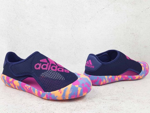 БосоніжкиAdidas Altaventureвін легкий, гнучкий і зручний протягом усього дня. Вони створені для пригод у воді та на суші. В'єтнамки швидко сохнуть і мають ремінці спереду, щоб вони не сповзали з ніг. Легка, еластична піна забезпечує тривалу амортизацію.