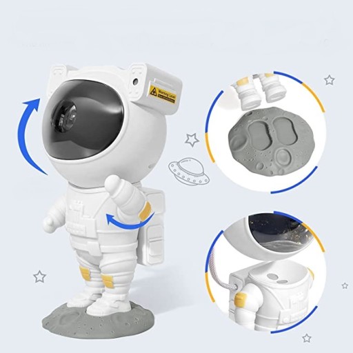 Проектор був зроблений звисокоякісні матеріализ увагою до деталей. Він надійний, займає буквально 2 секунди для завантаження, і це шматок пирога. Світлодіодний проектор вбудовано в рухому голову космонавта. Дякуювбудовані магнітинадійно утримує тулуб і забезпечує легкий доступрегулюйте кут світла. Яскраві зірки, динамічний ефект планетарних туманностей у далеких галактиках і милий астронавт. Все це робить його веселим і цікавим подарунком для дітей.