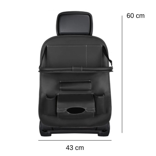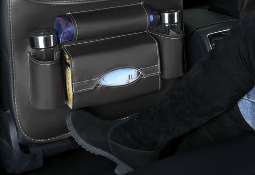 Чорний автомобільний органайзер з екошкіри буде тримати Ваш автомобіль в порядку! Завдяки кількості кишень можна помістити всі необхідні речі. Можливість кріплення на сидіння заощадить вам більше місця в автомобілі, додатково захистить ваше сидіння від потертостей і бруду! Органайзер ідеально підходить для повсякденних поїздок на роботу, в школу і під час тривалих поїздок, наприклад, у відпустку.