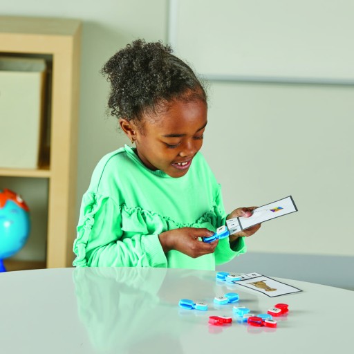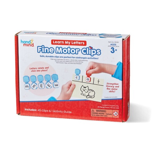 Набір Learning Letters Motor Clips складається зі 156 маленьких друкованих літер, які легко читаються та позначені крапкою, що дозволяє розпізнати їхню правильну орієнтацію. Ці букви можна прикріпити до 45 затискачів у будь-якому напрямку знизу, зверху чи збоку. Великі крапки на кліпах можна використовувати як заповнювачі. У набір також входить посібник із заняттями, який пропонує багато розваг і заходів для розвитку навичок читання та письма, а також робочі аркуші, які ви можете завантажити та роздрукувати самостійно.