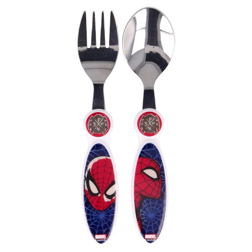 Набір, що складається з металевої ложки та виделки, завдяки яким ваша дитина навчиться користуватися дорослими столовими приборами під час їжі весело та безпечно завдяки їх округлій формі. Вони сподобаються дітям під час їжі завдяки оригінальному декору, візерунки якого створені за мотивами найпопулярніших героїв дитячих фільмів і серіалів - Складаються з ложки та виделки - Декоровані ручки - Без BPA
