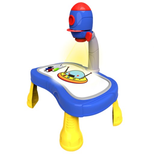 Дитина може вибрати з багатьох тем, у тому числі космічних, які познайомлять її з космічною подорожжю, сповненою уяви та творчості.Космічна ракета має зручний перемикач для ввімкнення світла, що створить потрібну атмосферу для творчих досліджень.