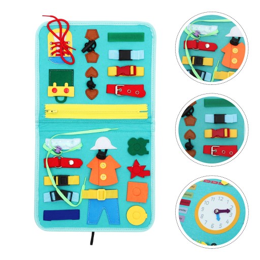 Ця креативна розвиваюча іграшка для маленьких дітей виготовлена з якісного фетру та безпечна для малюків. Це навчить вас, як у цікавій формі вивчити всі види пряжок, застібок, зав’язок і ґудзиків. І він має алфавіт на звороті, і він надзвичайно барвистий. Це ідеальний подарунок для дітей, щоб навчитися одягатися.