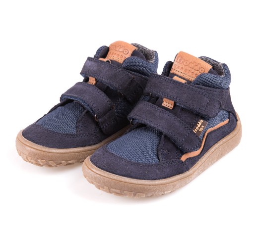 Взуття Froddo Barefoot — це взуття, створене на основі мінімалістичного дизайну, що забезпечує максимальне відчуття землі. Форма взуття схожа на форму стопи. Верх виконаний з м'якої натуральної замші в поєднанні з сітчастими тканинами, які підвищують повітропроникність. Підошва легка, гнучка і еластична. Дві застібки-липучки гарантують хорошу посадку для обох ніг з високим і нормальним склепіннями.