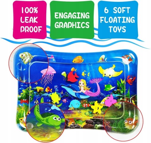 Найвища якість Наші надувні ігрові килимки виготовлені з міцного та довговічного матеріалу ПВХ, який не є токсичним і не містить бісфенолу А, що робить його водонепроникним і вільним від бруду. Розвиток Стьобаний килимок необхідний для формування міцних м’язів голови, шиї та плечей, повзання та ходьби. Веселий та стимулюючий час, проведений за животиком, також допоможе вашій дитині ознайомитися з навколишнім середовищем, одночасно розвиваючи основні рухові навички. 3 нескінченні години розваг Дозвольте вашій дитині панувати над океаном, не виходячи з вашої вітальні, за допомогою ігрового килимка з водяними подушками. Яскраві зображення та форми змушують вашу дитину зануритися в море та його тварин. 4 Легко зібрати та зберігати. Просто надуйте 2 зовнішніх кільця та наповніть внутрішню частину водою за бажанням із крана, покладіть водяний килимок на підлогу та почніть грати. Коли він не використовується, ви можете спорожнити водяний килимок і скласти його для зберігання або покласти в сумочку чи сумка для іграшок, щоб брати її куди завгодно. 5 Ідеально підходить для гри. Стьобаний килимок StillCool має розмір приблизно 66 см х 46 см і підходить для дітей від 3 місяців. Плаваючі морські іграшки та яскраві зображення привернуть вашу дитину та подарують їй радість гри з морським світлом.