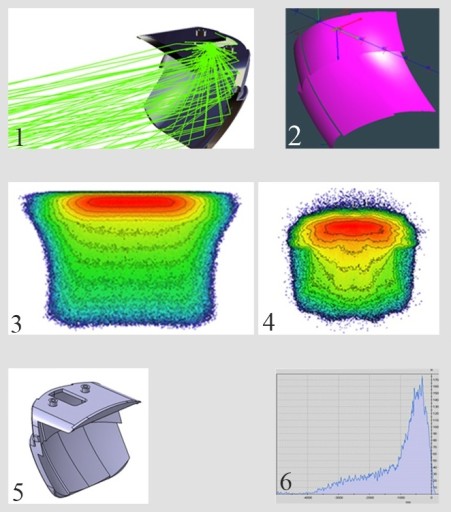 Інноваційна головка, повністю виготовлена з прозорого матеріалу, і дворівневе дзеркало надають лампі дуже широкий кут освітлення. Світло заломлюється на краях голови, що дозволяє висвітлювати поверхню безпосередньо перед колесом або фокусувати світло на відстані.