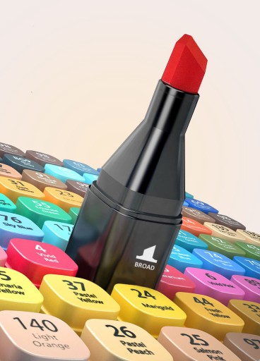 Професійний набірбренди RIMARK пропонуєдо 80 маркерівз яскравими кольорамивисокоякісне чорнилоалкоголь. Тільки в наших маркерах ми використовуємо спеціальну суміш чорнила RIMARK pro+ зпідвищена довговічністьі полегшення малювання iзмішування кольорів.