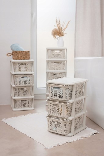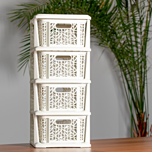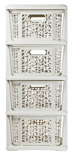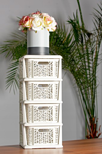 Виріб складається з 4 контейнерів, які виконують функцію ящиків. Вони зроблені з пластику, але виглядають як ажурні кошики. Завдяки цьому вони виглядають дуже естетично.