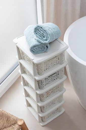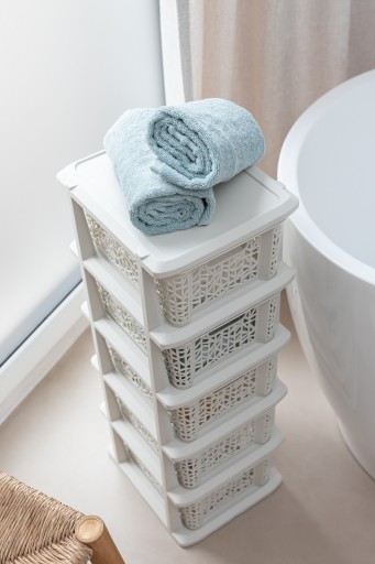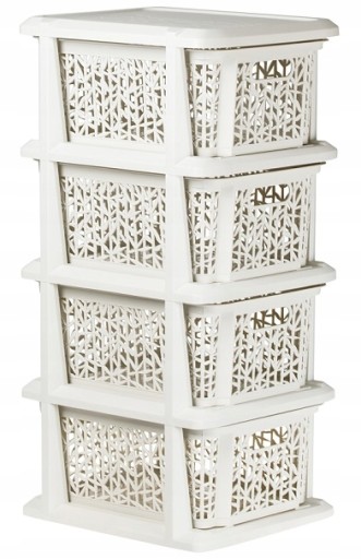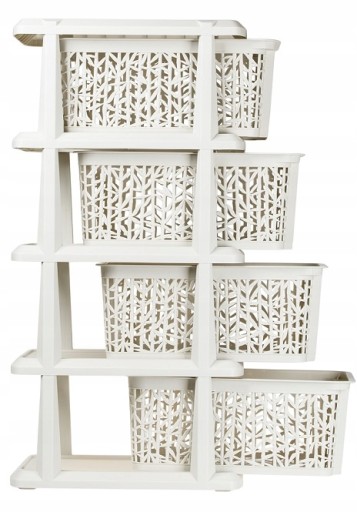 Виріб складається з 4 контейнерів, які виконують функцію ящиків.Вони виготовлені з пластику, але виглядають як кошики аура, завдяки чому виглядають дуже естетично.