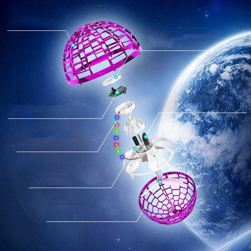 Нескінченна розвага в будь-який час і в будь-якому місці: вам не потрібно багато місця, щоб зняти міні-дрон під час польоту, немає обмежень у просторі, і ви можете легко грати в приміщенні або на вулиці. Ця повітряна куля, що літає, є ідеальною темою для сімейних, шкільних і святкових зустрічей. Вночі, коли летюча куля обертається, RGB-ліхтарі всередині випромінюють різнокольорове світло, як літаючі ельфи в нічному небі.