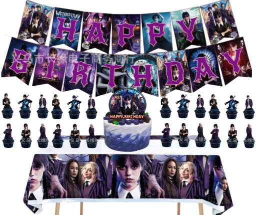 Набір чашки + тарілки + серветки + шапочки на день народження Wednesday Addams