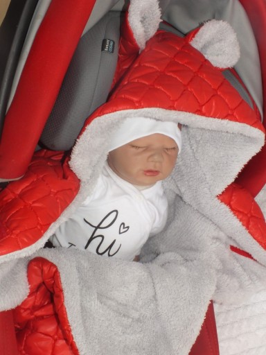 - розмір: загальна довжина з капюшоном 65 см, довжина від плечей 50 см, ширина в складеному вигляді 42 см - ідеально від новонародженого