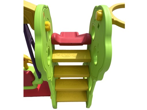 Гойдалки (висота 120 см, сидіння 25 см х 30 см, спинка 40 см) і гірка (висота 110 см, довжина 150 см, гірка 135 см х 37 см) подарують море задоволення під час веселих катань.