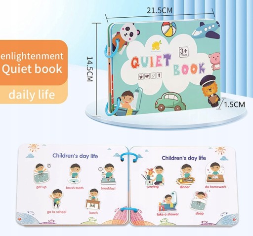 Зошит для маленьких дітей є чудовим інструментом для навчання через гру. Допомагає розвивати когнітивні, моторні, вербальні навички та навички вирішення проблем, пам’ять і координацію очей і рук. Чудові іграшки Монтессорі для дітей із затримкою мовленнєвого розвитку.