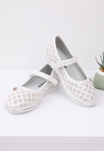 Балетки для дівчинки на плоскій підошві. Верх Aura з еко-царапки. Круглий носок, застібається на щиколотку вузьким ремінцем. Збоку маленька аплікація у вигляді квіточки.