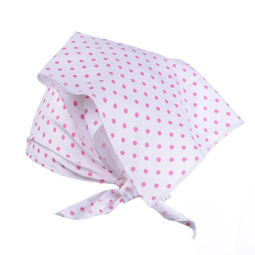 Бавовняна хустка з легкої, повітряної тканини - ідеальний головний убір для весняно-літнього сезону. Чудово працює під час прогулянок, ігор і прийняття сонячних ванн, захищаючи від різкого сонця і вітру, забезпечуючи при цьому комфорт і зручність. Завдяки можливості будь-якої перев'язки виріб ідеально підлаштовується під кожну голову, а крім того, хустку можна стилізувати різними способами, урізноманітнивши таким чином дитячий гардероб. Візерунок у дрібний горошок чудового рожевого відтінку ідеально підходить до дівчачих стилізацій і робить нашу маленьку принцесу милою та чарівною.