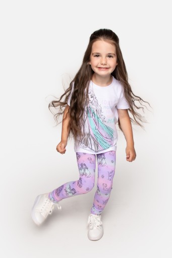 Довгі легінси для дівчинки. Модель з принтом у формі персонажа з казки "Холодне серце". Гумка в поясі.