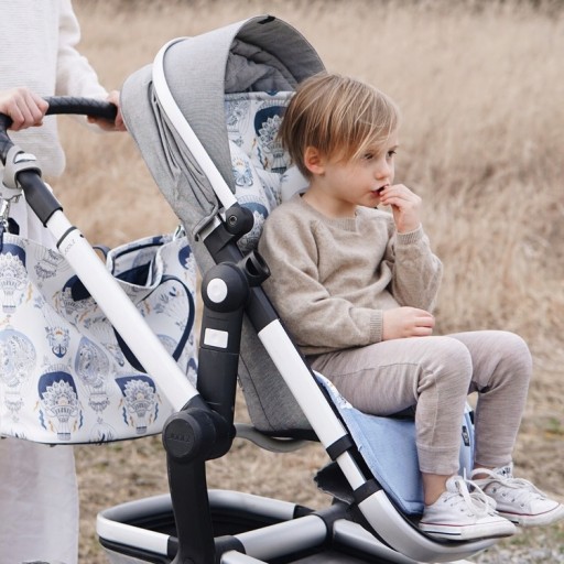 Вставка оснащена системою отворів для ременя, сумісною з більшістю колясок, і двома еластичними стрічками, які дозволяють прикріпити виріб за кілька секунд.