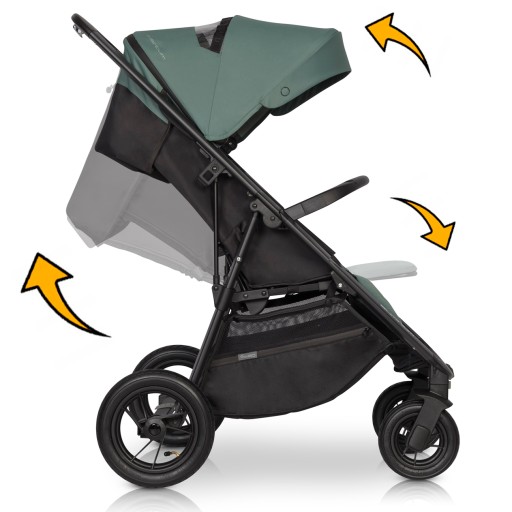 - Регулювання спинки- починаючи від обстановки, в якій наша дитина проходить маршрут сидячи, закінчуючи повним опусканням «спинки», що дозволяє їй спокійно подрімати.