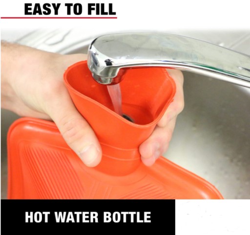 - Тримайте гумову горловину грілки у вертикальному положенні та наповніть грілку водою наполовину.