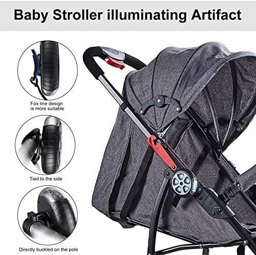 Безпечний і практичний,багатофункціональний ліхтар безпеки: Лампа для дитячих візків, оснащена 18 світлодіодами: перші 4 білі світлодіоди забезпечують освітлення, а задні 2 червоні світлодіоди є попереджувальними. Крім того, 12 світлодіодів, розміщених з боків, покращують видимість у темряві, забезпечуючи безпеку під час прогулянок.