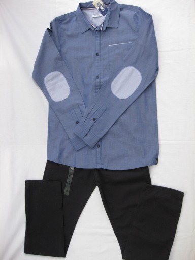 1. Елегантна сорочкавід відомої французької компанії OKAIDI в синьому - металіку з модними нашивками на рукавах