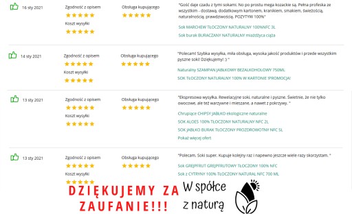 На цьому сайті замовляємо вже більше 3-ох років, здебільшого продукти харчування для малечі. Обслуговування завжди на вищому рівні. Дякуємо, за можливість замовляти якісні товари з Польщі.