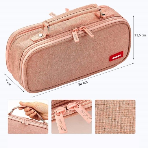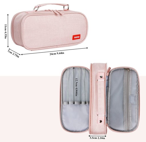 [Унікальний дизайн]: із заклепкою для зміцнення ручки, нелегко зламати; і потовщений ремінь на ручці для комфортного використання та легкого носіння. Дві подвійні блискавки, безпечні для всіх ваших організованих речей. пенал містить еластичний ремінь, який надійно утримує олівець або предмети, щоб вони не випали.