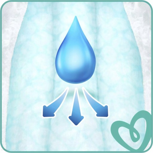 Підгузки PAMPERS використовують революційну технологію, яка допомагає рівномірно розподіляти вологу в 3 поглинаючих каналах і додатково забезпечує правильну циркуляцію повітря навколо шкіри дитини.