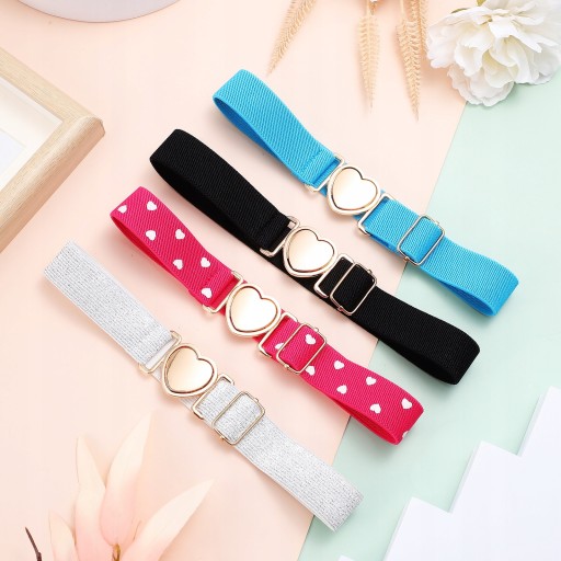 Цей пояс регулюється і зручний для носіння дітьми. Еластичний пояс дуже гнучкий за довжиною, тому він може задовольнити різні потреби дітей у штанях. Застібка ремінця має дуже красиву форму серця, а металева текстура виглядає ніжно і гладко. Високоякісний матеріал, що забезпечує його довговічність і практичність.