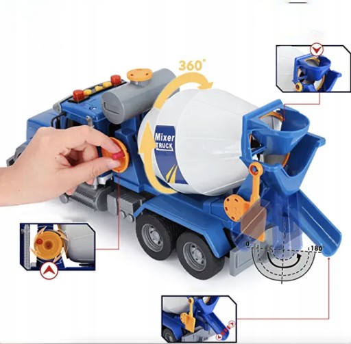- Реалістичне світло і звуки: світло, звуковий сигнал, звуки запалювання вбудовані в цю синьо-білу будівельну бетономішалку.