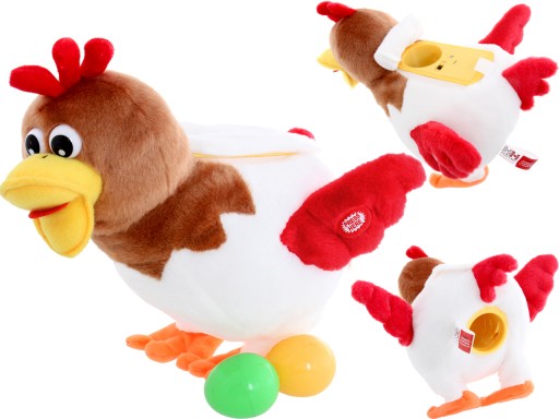 чудова інтерактивна курка, яка несе яйця. Крім того, він співає польською і робить присідання. Відкладаючи яйця, весело літає і піднімається на ніжках. Курка виготовлена з м'якого і приємного плюшу.