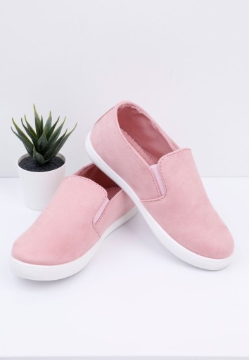 Кросівки для дівчинки на білій гумовій підошві. Виготовлені з еко-замші, з боків прикрашені квітковою вишивкою. З боків вшиті гумки, що полегшують взування. Чарівні кросівки поєднуються з багатьма стилями.