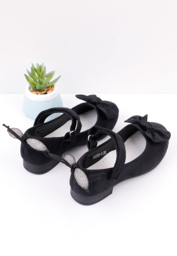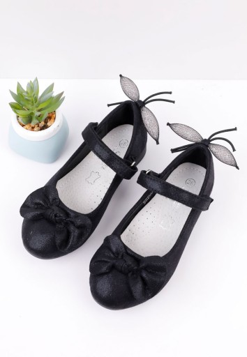 Дитячі балетки, на плоскій підошві.Нос круглий. Низький верх перед щиколоткою. Застібається на липучку. Прикрашена бантом спереду та аплікацією у формі банта ззаду. Профільна устілка, виготовлена з натуральної шкіри. Ідеальна модель для вашої дитини.