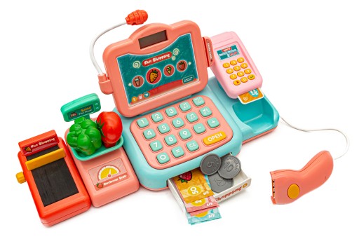 Гра в магазин з навчальним касовим апаратом - ідеальна розвага для групи дітей або всієї родини. Дозвольте собі зануритися в розумну розвагу на багато годин!
