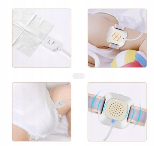 Це дуже зручний продукт із функцією нагадування про нічне нетримання сечі для немовлят і малюків.Коли відбувається нічне нетримання сечі, лунає звуковий сигнал і вібрація, щоб нагадати дорослим знати та вчасно вжити заходів, які є корисними для здоров’я дитини. Нагадувач має високу чутливість до вологості, а реакція швидка і чутлива. Виріб компактний і його легко носити, просто затисніть контрольну головку в місці, де його можна виявити. Завдяки йому дорослі можуть легко знайти сухе і вологе положення підгузків свого малюка