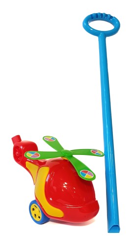 Дитина веде іграшку перед собою за допомогою прикріпленої палички.