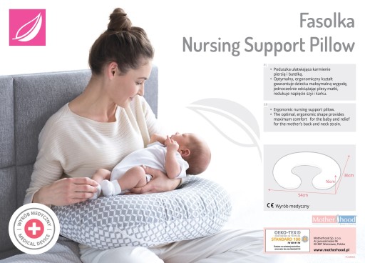 Bean Motherhood - це унікальна подушка, яка полегшує грудне вигодовування. Оптимальна, ергономічна форма гарантує максимальний комфорт для малюка, одночасно зменшуючи спину мами, зменшуючи напругу шиї та шиї.