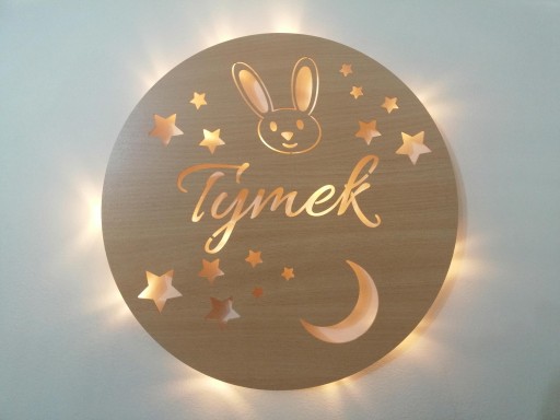 Персоналізована дерев'яна світлодіодна лампа з ім'ям малюка або будь-яким написом.