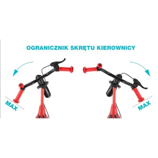 Цей велосипед позбавлений педалей, що дозволяє дитині зосередитися на навчанні утримувати рівновагу та напрямок руху. Блокування кута повороту рульового колеса є хорошим рішенням для малюків, які тільки починають свою пригоду з балансирними велосипедами (і не мають можливості тримати кермо)