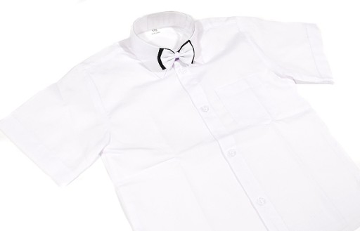 Елегантна сорочка для хлопчика з коротким рукавомрукаві з краваткою-метеликом на резинці. Має кишеню на передній лівій стороні. Він ідеально підходить для всіх видів шкільних, церковних або сімейних свят.
