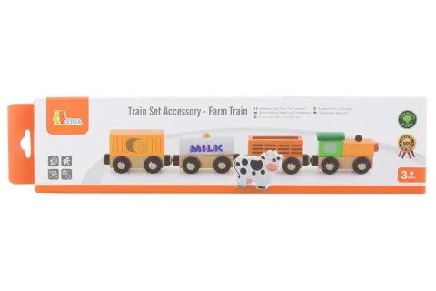 Дерев'яна фігура поїзда з вагонами, наповненими вантажем, що прямує на ферму. Складається з 4 елементів, які з'єднані між собою магнітами. Він розроблений авторитетним виробником дерев'яних іграшок Viga Toys для дітей від 3 років, ідеально підходить для дитячого садка та вдома.