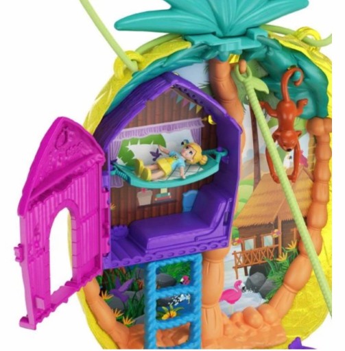 - Palm House:Після захоплюючої розваги Поллі може піднятися по драбинібудиночок на пальмі з дверима, що відкриваються, і відпочиньте в гамаку чи ліжку!