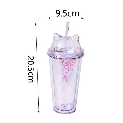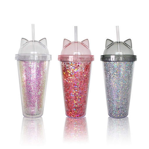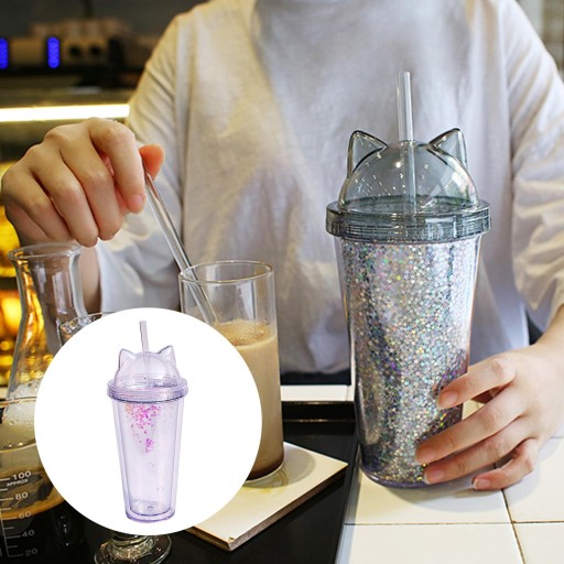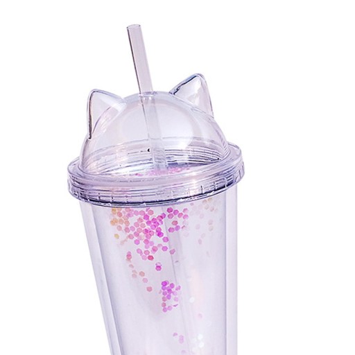 Чашка з подвійними стінками, прикрашена блискітками, і прозора соломинка для пудри
