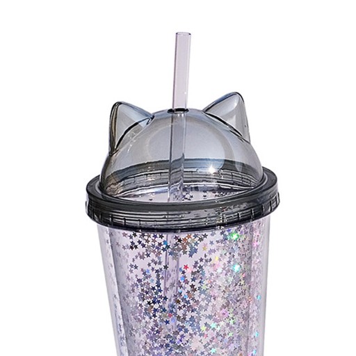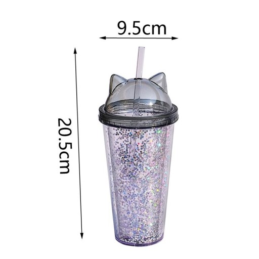 Чашка з подвійними стінками з паєтками та соломинка для чорного порошку