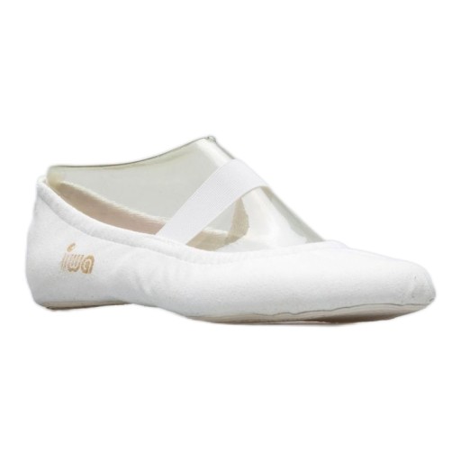 Балетки IWA 300 - це класична модель спортивного гімнастичного взуття. Вони ідеально підійдуть під час вправ на бревні, а також під час корекційних вправ або занять ритмікою. Модель представлена в універсальному білому кольорі, що забезпечує елегантний і естетичний вигляд з кожним гімнастичним спорядженням. Верх з глибокими поглибленнями значно збільшує діапазон рухів, а широка еластична стрічка навколо верхньої частини стопи ідеально підтримує взуття під час занять. Використана в даній моделі протиковзка підошва з високоякісної гуми додатково оснащена спеціальною амортизуючою вставкою IWA-PowerGel в п'ятковій частині, що ще більше підвищує комфорт використання кед. Матеріал, з якого виготовлені балетки - синтетична замша, надзвичайно міцна і стійка до стирання, що дозволяє гравцям довго насолоджуватися балетками.