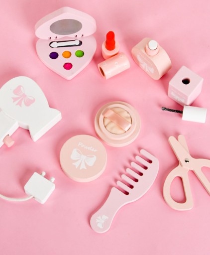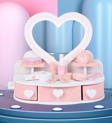 Дерев'яний туалетний столик для дівчинки з косметикою