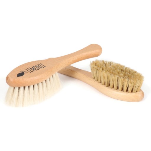 Ідеальна комбінація 2 щіток для догляду та масажу тіла немовлят. Щітка з натуральної щетини відмінно підійде для зняття люльки, а щітка з натуральної козячої щетини - для догляду за головою і тілом малюка.