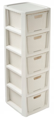 Виріб складається з 5 контейнерів, які виконують роль ящиків. Вони зроблені з пластику, але зовні нагадують ротангові кошики. Завдяки цьому вони виглядають дуже естетично.