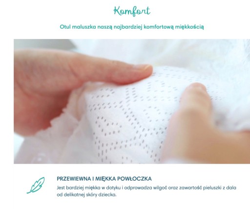 Шкіра вашої дитини може бути вдвічі гарячішою за вашу, що робить її особливо чутливою до потертостей і подразнень. Тому підгузники Pampers Premium Care, які найчастіше обирають пологові будинки, м’якші, ніж будь-коли, і ще краще вбирають вологу. Їх дихаюча легка внутрішня оболонка забезпечує комфорт - мікропори дозволяють свіжому повітрю проникати в підгузок і виводити вологу назовні.